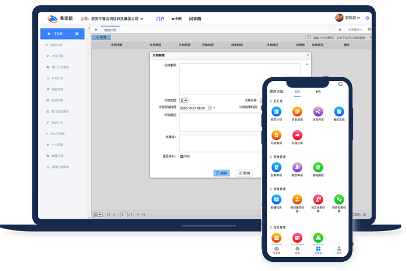 计划类型有多种选择(日、周、月、季、年);计划支持共享给指定领导,领导在计划共享中可以查询到共享给自己的共享列表。