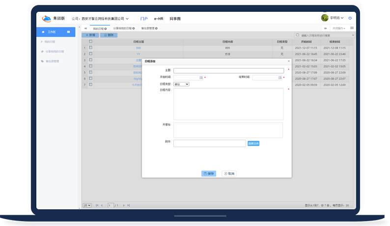 日程管理是员工时间安排的只能助手,员工可以根据自己的工作安排自己的日程并分享给自己的领导或者相关人员,系统会提前在日程开始的前一天进行日程提醒,加大员工工作效率。