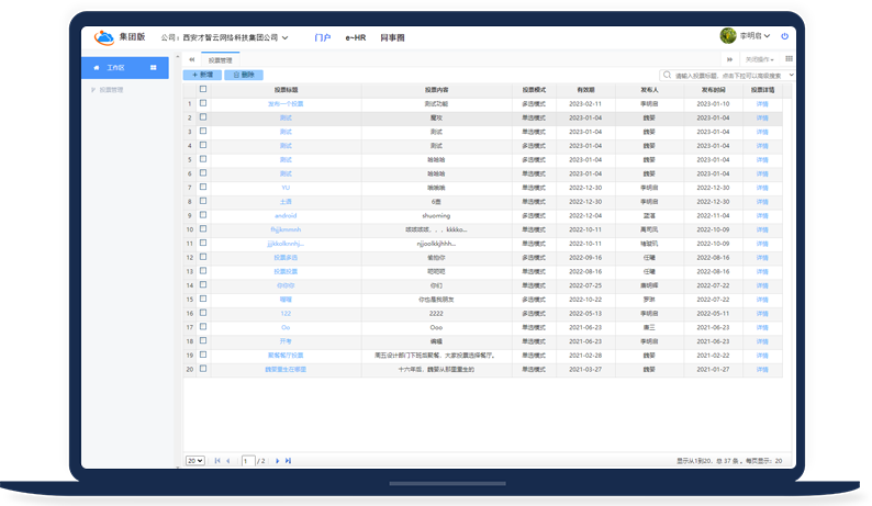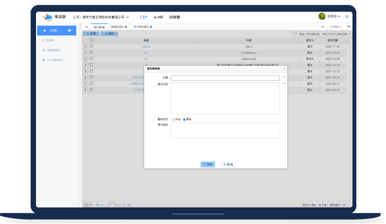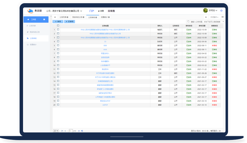 公告管理是企业日常发布公司的相关制度,通知的功能模块。公告可以发布公开公告,或者授权公告,授权公告需要选择相关的授权人员,只有授权人员才能接收到公告通知。