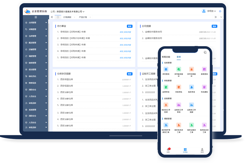 后勤运营业务与生产经营协同化,业务全场景信息化覆盖,统一平台,助力企业提高生产力和经营水平。